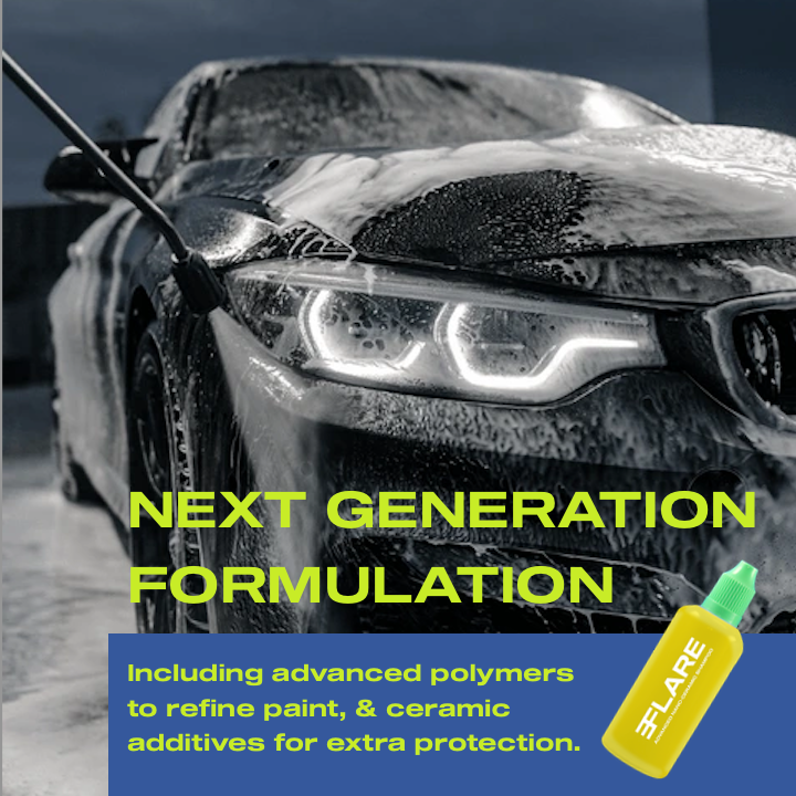 FLARE pH neutral shampoo is a professional level, highly concentrated car shampoo that is wax and sealant safe & suitable for all paint types and vinyl wraps.